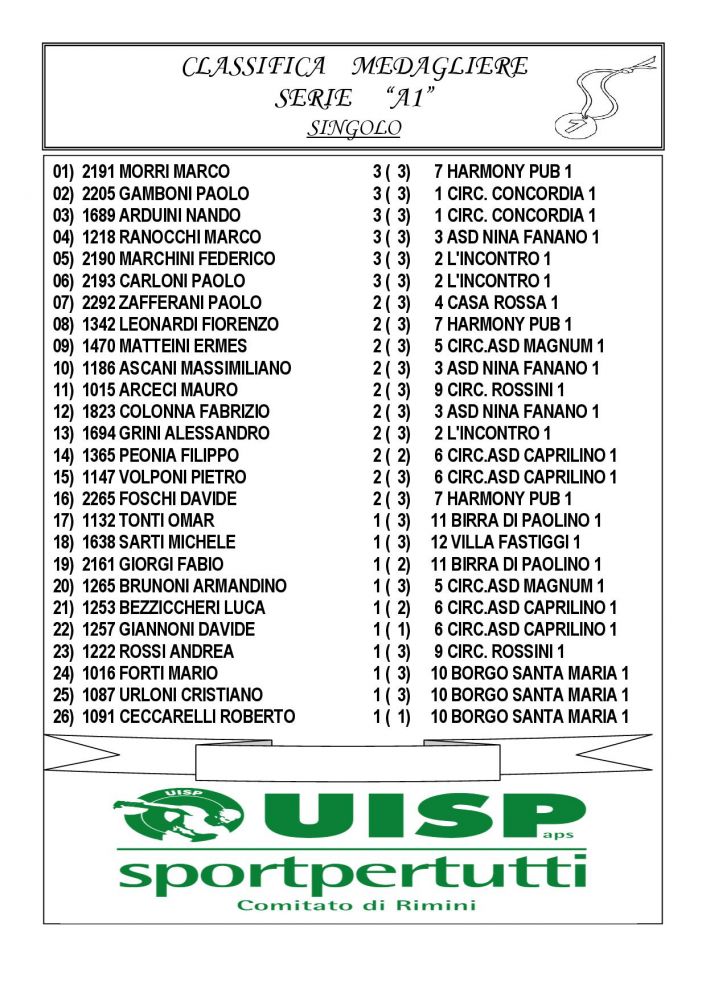 MEDAGLIERE SERIE A1 2025/2026