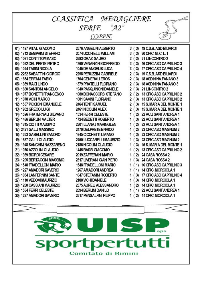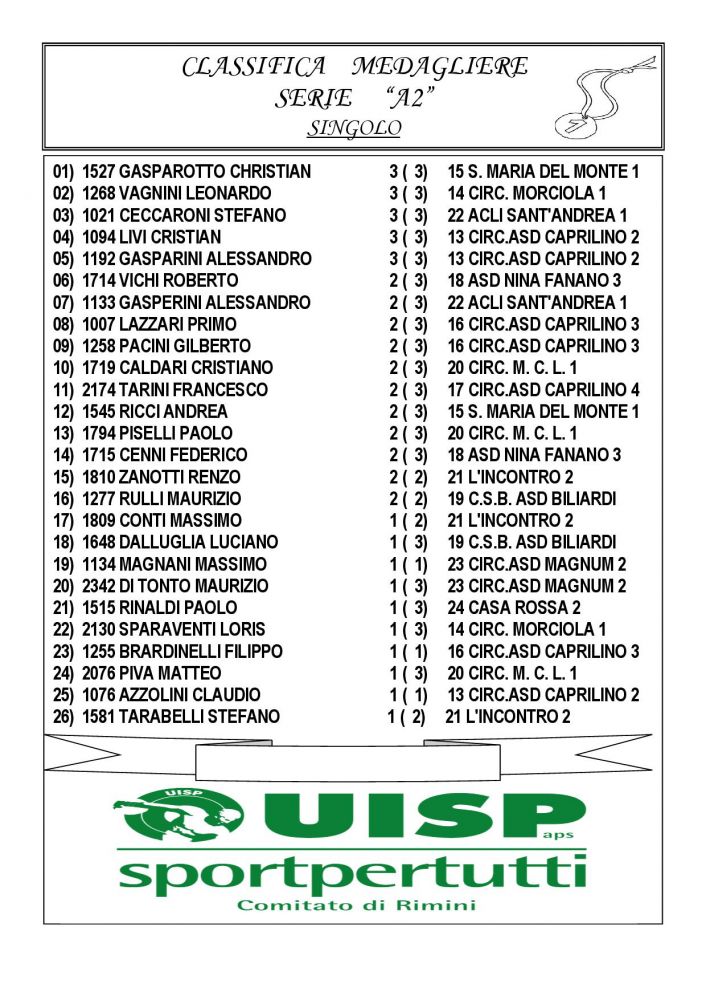 MEDAGLIERE SERIE A2 2025/2026