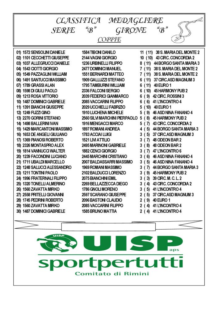 CLASSIFICA INTERPROVINCIALE COPPIA