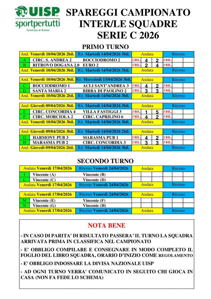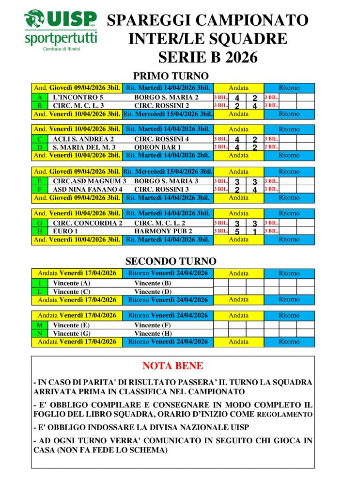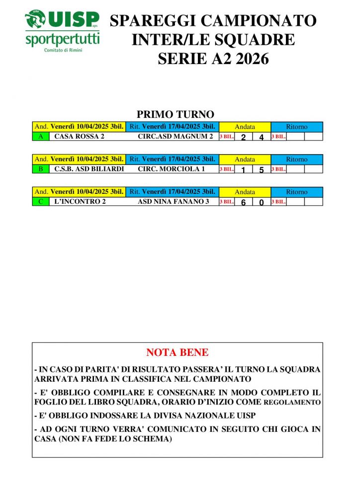 RISULTATI ANDATA PRIMO TURNO DI SPAREGGI