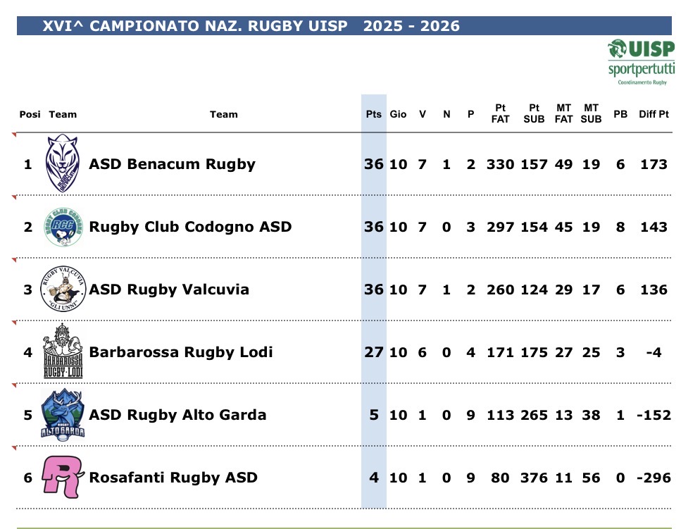 Classifica FAIR PLAY TEAM