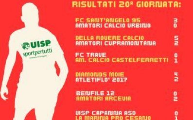 L'Amatori Calcio Uisp Urbino ferma la capolista (1 - 1). Non ne approfitta il Della Rovere, superato 3 - 1 da un ottimo Amatori Castelferretti. Vittorie nette per Fc Sant'Angelo 95 e La Marina Pro Cesano che riducono le distanze dalla vetta della classifica. Vincono anche Amatori Arcevia, Uisp Capanna e Diamonds Moie che interrompe una serie negativa di risultati.