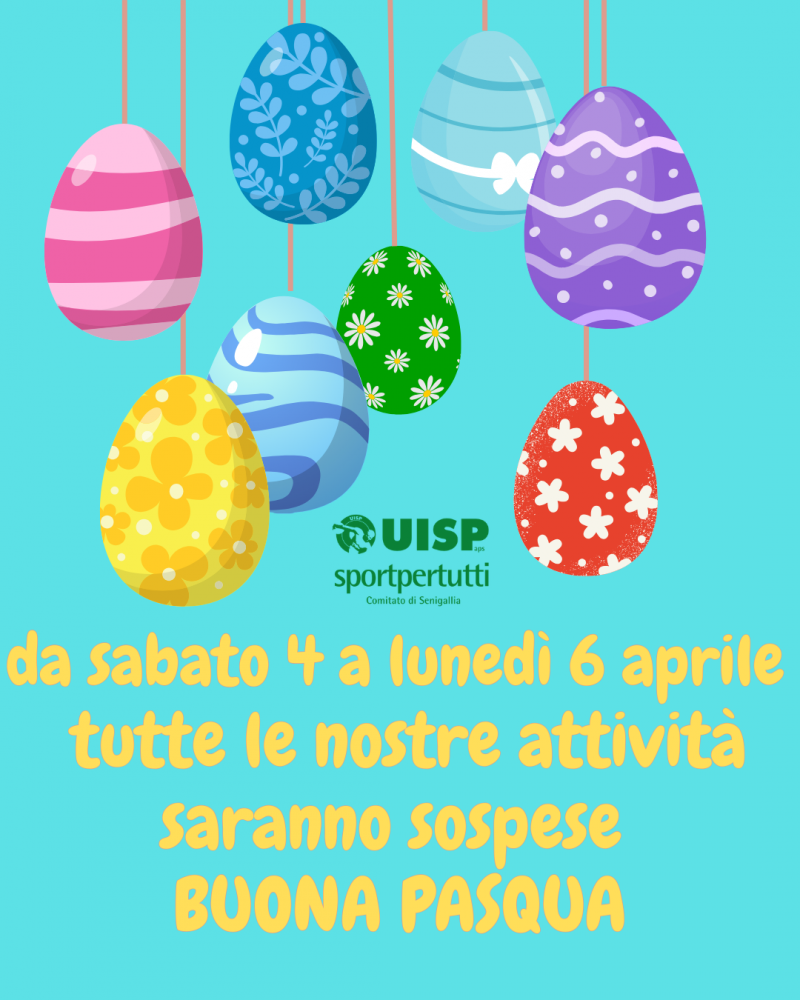 Si comunica che per il perido di Pasqua tutte le nostre attività sarrano sospese da sabato 04 aprile a lunedì 06 aprile compresi. Si riprenderà regolarmente da martedì 07. A tutti Buona Pasqua