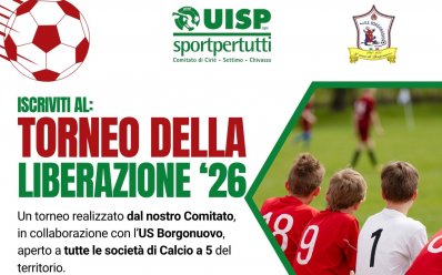 Sono aperte le iscrizioni al Torneo della Liberazione ‘26, promosso dal Comitato **UISP Ciriè – Settimo – Chivasso in collaborazione con US Borgonuovo.
