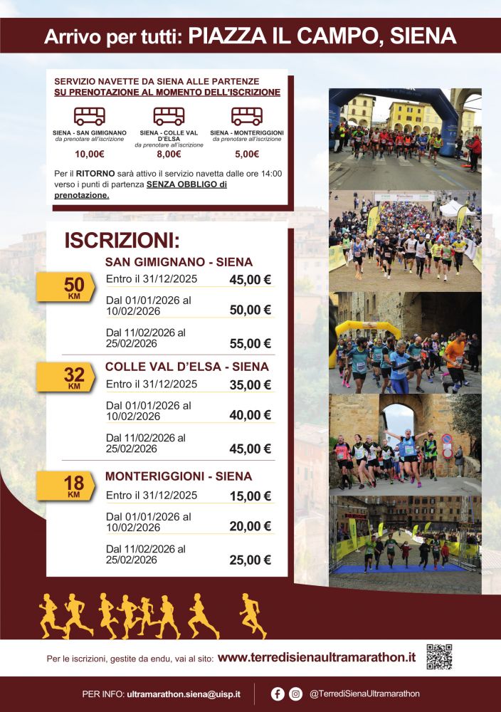 per informazioni e iscrizioni consultare http://www.terredisienaultramarathon.it/