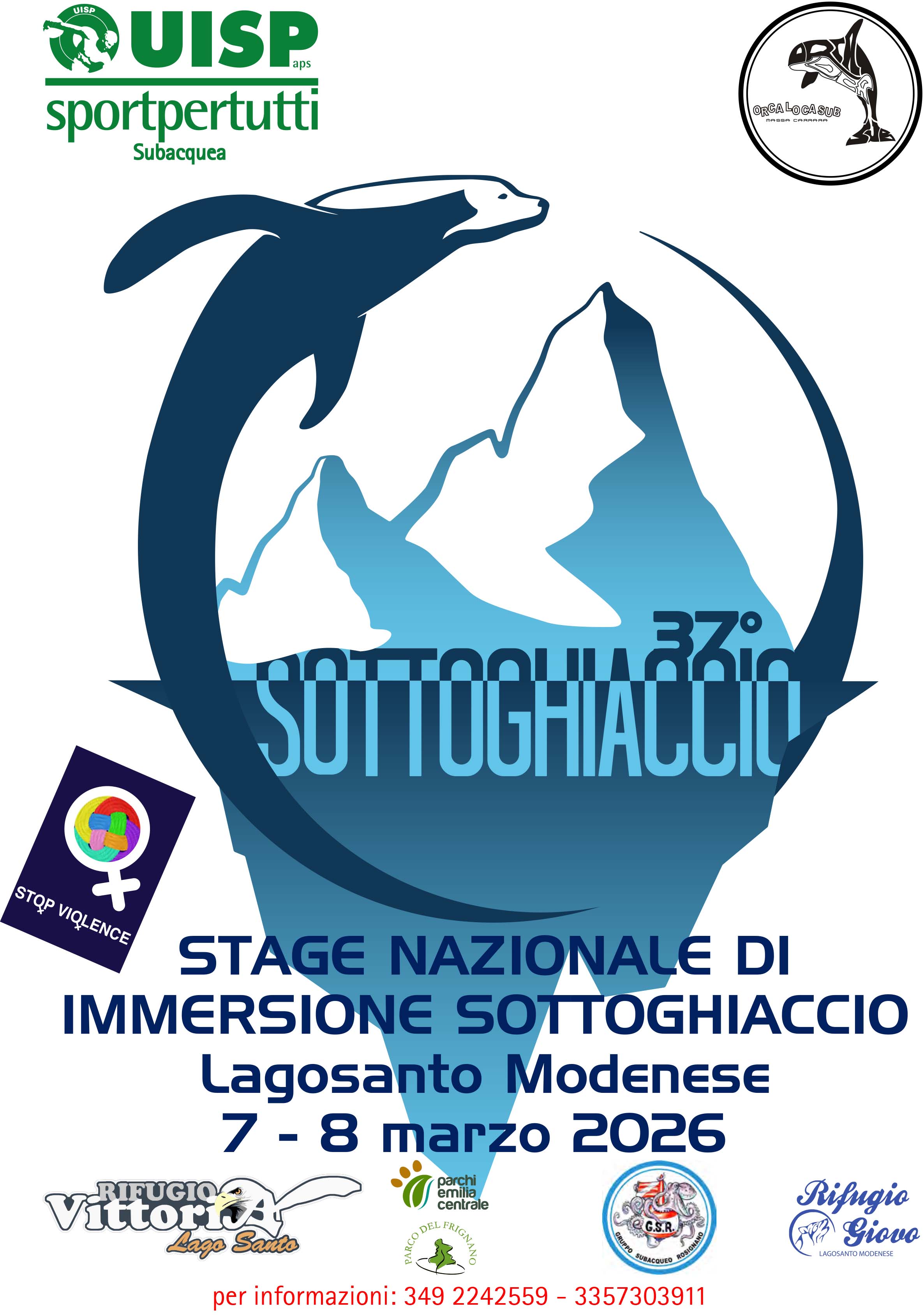 In data 7- 8 Marzo 2026 si svolgera presso Lagosanto Modenese il trentasettesimo stage Nazionale di immersione sottoghiaccio, La presente manifestazione è organizzata congiuntamente da UISP Subacquea Nazionale e Orcalocasub ed ha come finalità la promozione della pratica subacquea in condizioni particolari, con focus specifico sulla sicurezza e sulla corretta esecuzione di immersioni sotto ghiaccio.