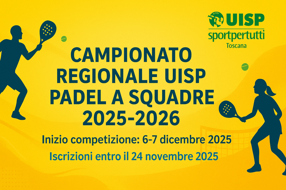 E' lo sport del momento e Uisp c'è! UISP Toscana Tennis organizza per la stagione 2025-2026 il Campionato Regionale UISP Padel a Squadre, una grande novità dedicata a quello che è ormai riconosciuto come lo sport del momento: il padel. La manifestazione, aperta a tutti, prevede campionati maschili, femminili e misti, suddivisi per livelli di gioco, e si pone l’obiettivo di promuovere uno sport capace di unire agonismo, divertimento e socialità, quindi in piena sintonia con la filosofia UISP dello "sportpertutti": il torneo valorizza la partecipazione e l’inclusione, offrendo a ogni giocatore la possibilità di vivere un’esperienza sportiva condivisa e accessibile.