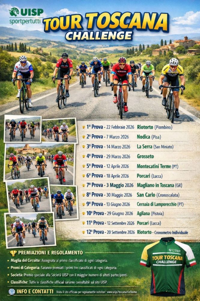 In una stagione in cui Uisp Toscana ha rafforzato i regolamenti dedicati all’attività amatoriale su strada, il Tour Toscana Challenge rappresenta il tassello sportivo più visibile di questo percorso, grazie alla sua capacità di federare province e territori diversi in un challenge regionale che esalta la Toscana intera come culla del ciclismo amatoriale. La scelta di distanze medio-brevi, l’attenzione alle categorie, la combinazione tra prove vallonate e cronometriche e la diffusione capillare sul territorio fotografano un movimento che cresce in numeri e qualità organizzativa. Per molti amatori toscani, la nuova maglia del circuito diventerà così il filo conduttore di un’intera annata, vissuta tra sfide personali, rivalità sportive e il piacere di pedalare insieme.