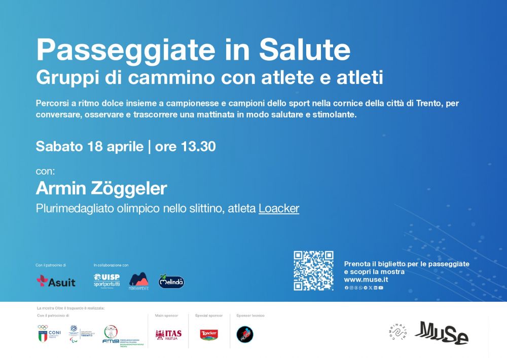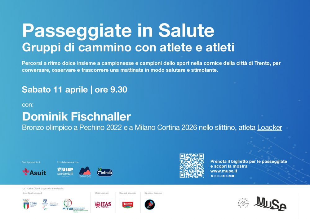 Inoltre, il giorno della passeggiata tutte le persone partecipanti potranno visitare il MUSE e la mostra Oltre il traguardo alla tariffa speciale di 7 euro, acquistando il biglietto direttamente in cassa.